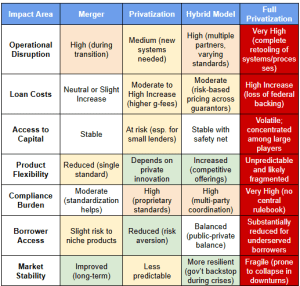 - Service & Affordability Risk: Low-income, rural, and first-time borrowers may be sidelined as private capital prioritizes profitability over public policy goals.